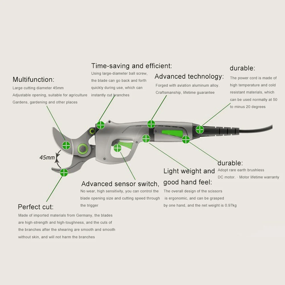 Best . (40% Off) Buy 36V Electric Fruit Tree Scissors Electric GardenTool 5cm Large Opening Fruit Tree Bonsai Pruning Secateur Branches Cutter Shears Price Online.